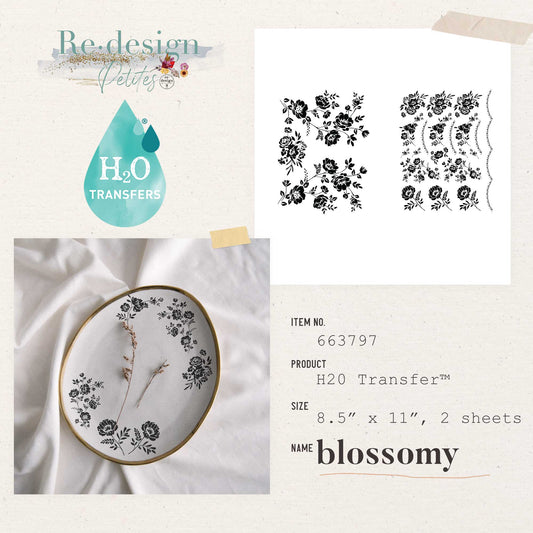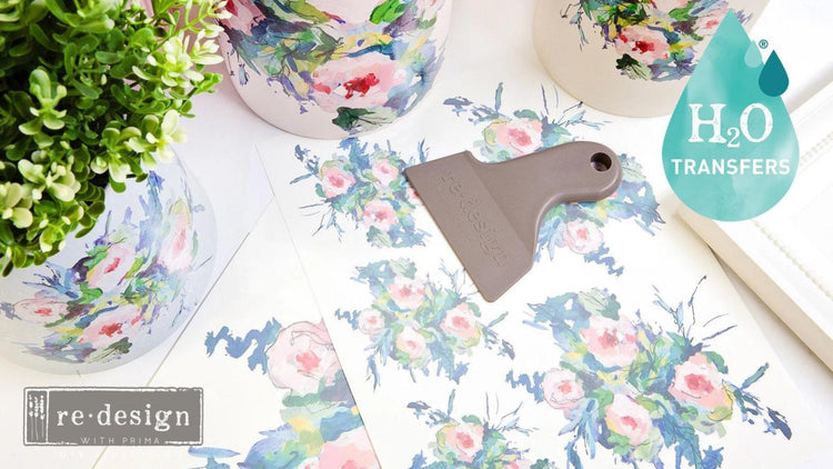 Let’s make a splash! Introducing NEW H2O Transfers, which feature easy-to-use, water-activated designs that can be used on almost any surface! Available in TEN gorgeous designs, try these beauties on wood, canvas, clay, glass, porcelain, paper, concrete, plastic, and so many more surfaces. Economically friendly, FAST results, no hand fatigue, built-in design guide…these are just a few of the many reasons you NEED new “Redesign Petite” H2O Transfers! With two full sheets of patterns, “Wild Garden” includes a gorgeous tiny floral-filled sheet and a full sheet of floral-covered vines, resulting in two wonderful options for uplifting your home Décor, mixed-media projects, and more!