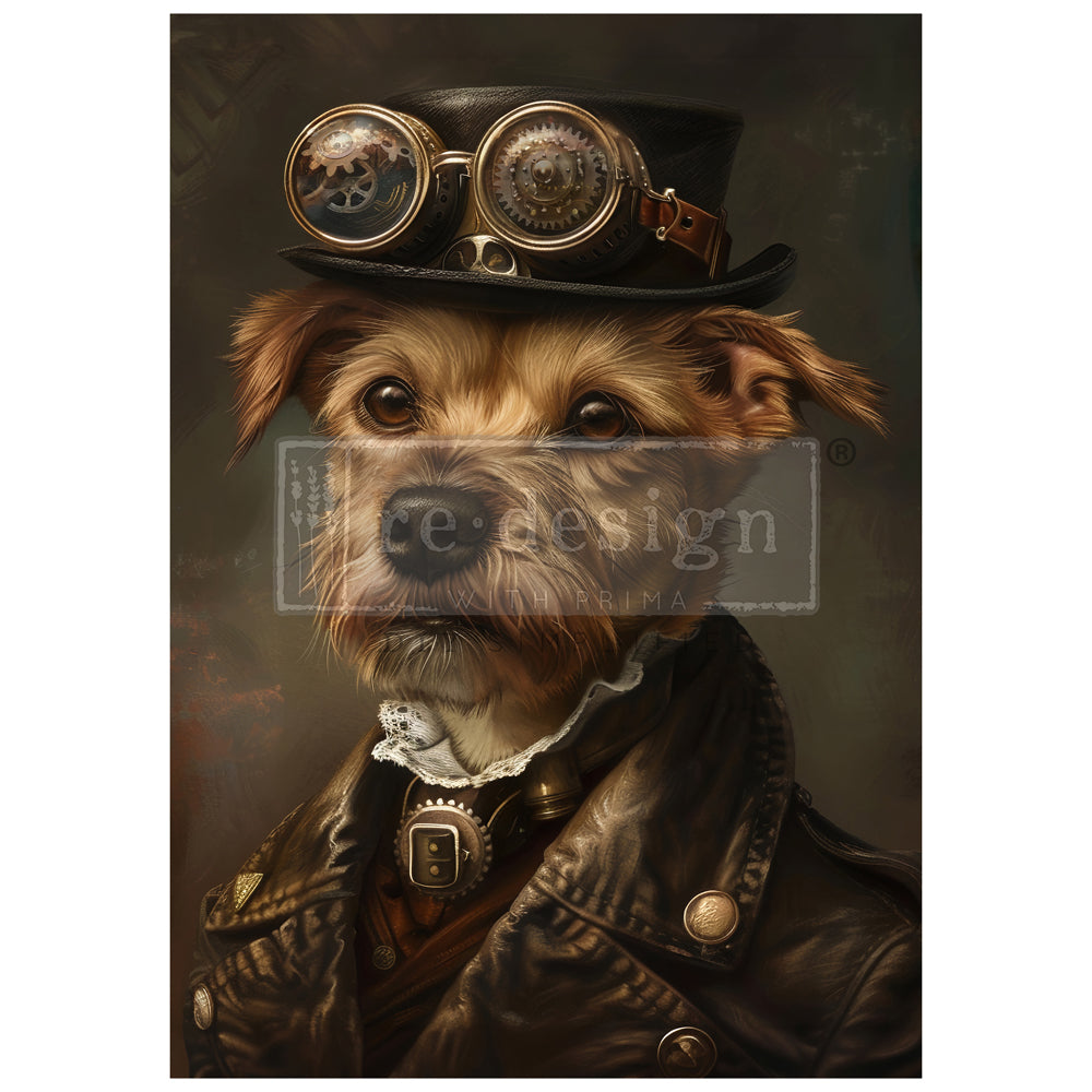 | "1 sheet, A1 size - Bring a playful yet sophisticated touch to your furniture with the ""Gear Hound"" Decoupage Fiber Paper by Redesign with Prima® Featuring a charming dog in steampunk attire, this piece is sure to be a conversation starter. Our A1 Decoupage Fiber Paper is incredibly easy to use. Simply measure and cut the desired amount of paper, add Decoupage Gel on the prepared surface, set paper on top and smooth it with the Scraper Tool or Brayer. Our Fiber Paper is created for use on walls, furniture, and other décor items" |