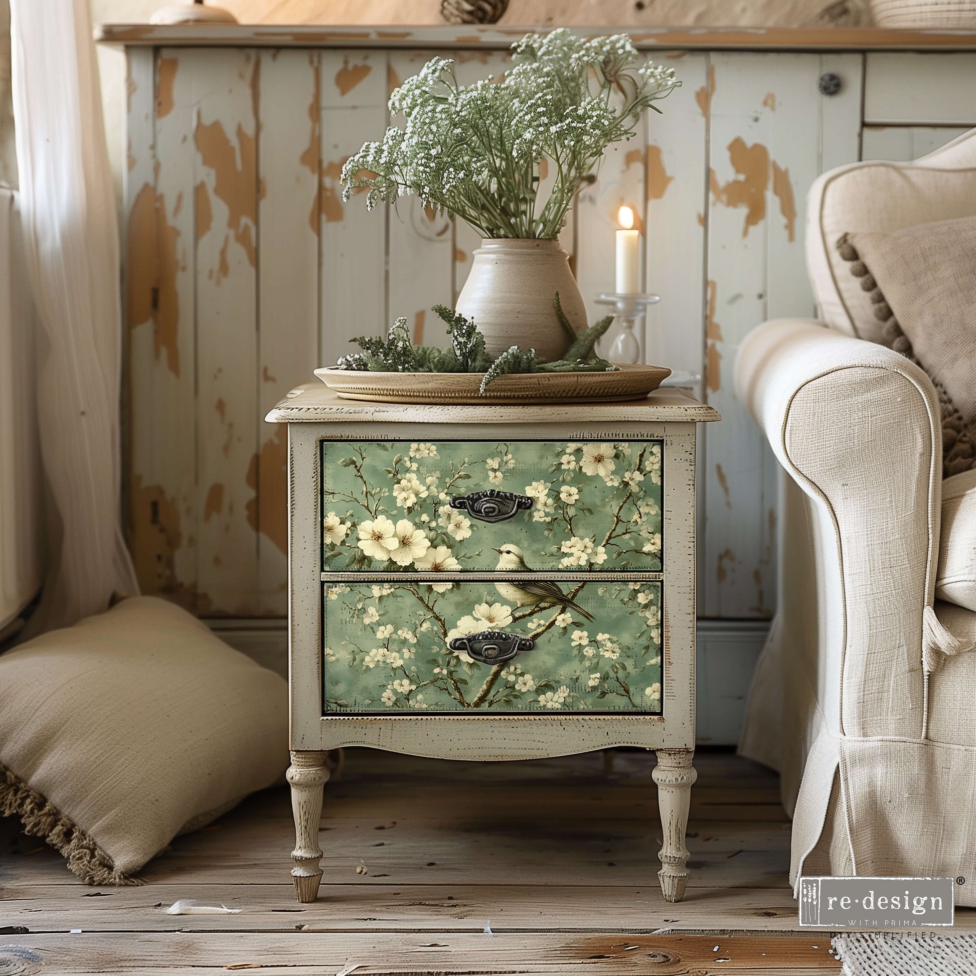 Soft florals and winding greenery, exuding timeless grace and elegance, lend a feminine touch in our new Pure Petal Elegance Pack, an exclusive A3 Decoupage Fiber Pack by Redesign with Prima®. Featuring three stunning 11.7"x16.5" sheets, this collection showcases the serene beauty of soft mints, blush pinks, delicate greens, and creamy florals. Perfect for adding a refined, romantic touch to your mixed media, furniture, and home décor projects, Pure Petal Elegance brings a sophisticated, yet delicate charm. For a flawless finish, pair with Decoupage Gel in Matte or Shine.