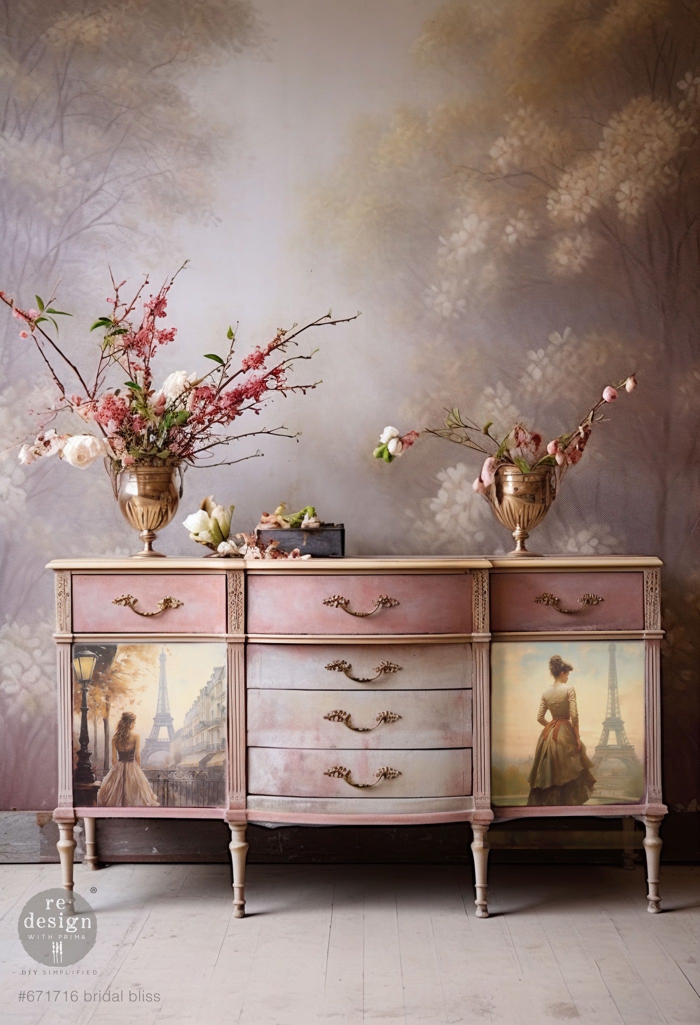 | Embark on a creative journey with the Decoupage Decor Tissue Paper Pack - "Bridal Bliss". This set offers a tableau of Parisian charm, featuring elegant brides and the iconic Eiffel Tower. The soft hues and timeless scenes make each sheet perfect for crafting wedding decor or lending a romantic touch to any piece. Whether adorning a memory box or enhancing home accents, these papers invite you to weave a narrative of love and beauty into your DIY endeavors.3 sheets, 19.5"x30" each - Our tissue paper is incredibly easy to use. Simply measure and cut the desired amount of paper, add Decoupage Gel on the prepared surface, set paper on top and smooth it with the Scraper Tool or Brayer. Our Décor Tissue Paper Set, incudes three sheets, each measuring 19.5”x30”, and is perfect for use on walls, furniture, and other décor items |
