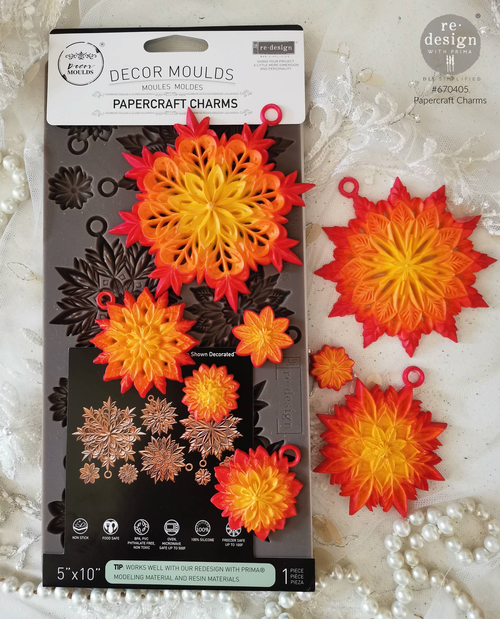 | "1 pc, 5""x10""x8mm - Elevate your holiday decorations with ""Papercraft Charms."" This mould includes eight intricate snowflakes of varying sizes, each with highly-detailed designs. Ideal for embellishing frames, adding ornate details to furniture, and creating elegant holiday ornaments and decor with a timeless touch! What sets this mould apart is its versatility. Not only is it suitable for DIY and crafting projects, but it's also food-safe and oven-safe, opening up a world of culinary possibilities. Whether you're working with resin, hot glue, modeling material, fondant, chocolate, or other pourable or moldable mediums, this mould allows you to create your own castings and food decorations with ease." |