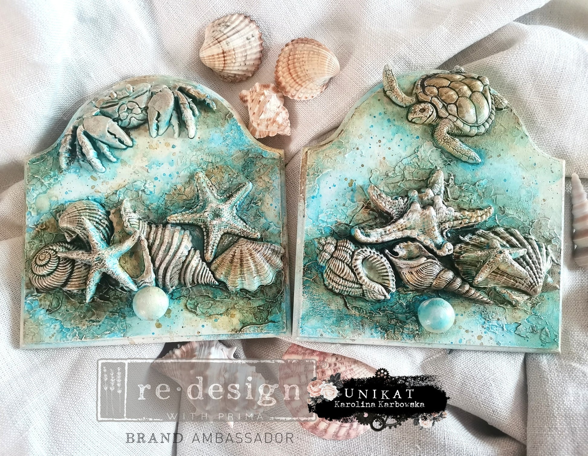 Crafted with precision and artistry, Redesign’s new “Reef Elegance” Decor Mould® is a testament to the wonders of the sea. At its center, a charming sailboat glides across the waves, its billowing sails caught in a gentle breeze, as it is guided by a picturesque lighthouse. Seashells, marine life, and beautiful birds finish out the array of detailed castings you may create with the mould. Coordinates beautifully with Redesign’s “Ocean” Collection! Redesign’s Décor Moulds®are durable, oven-safe, food-safe, and of the highest quality, allowing a variety of materials, including resin, hot glue, modeling material, and more, to help you create unique castings that are perfect for a variety of DIY projects.