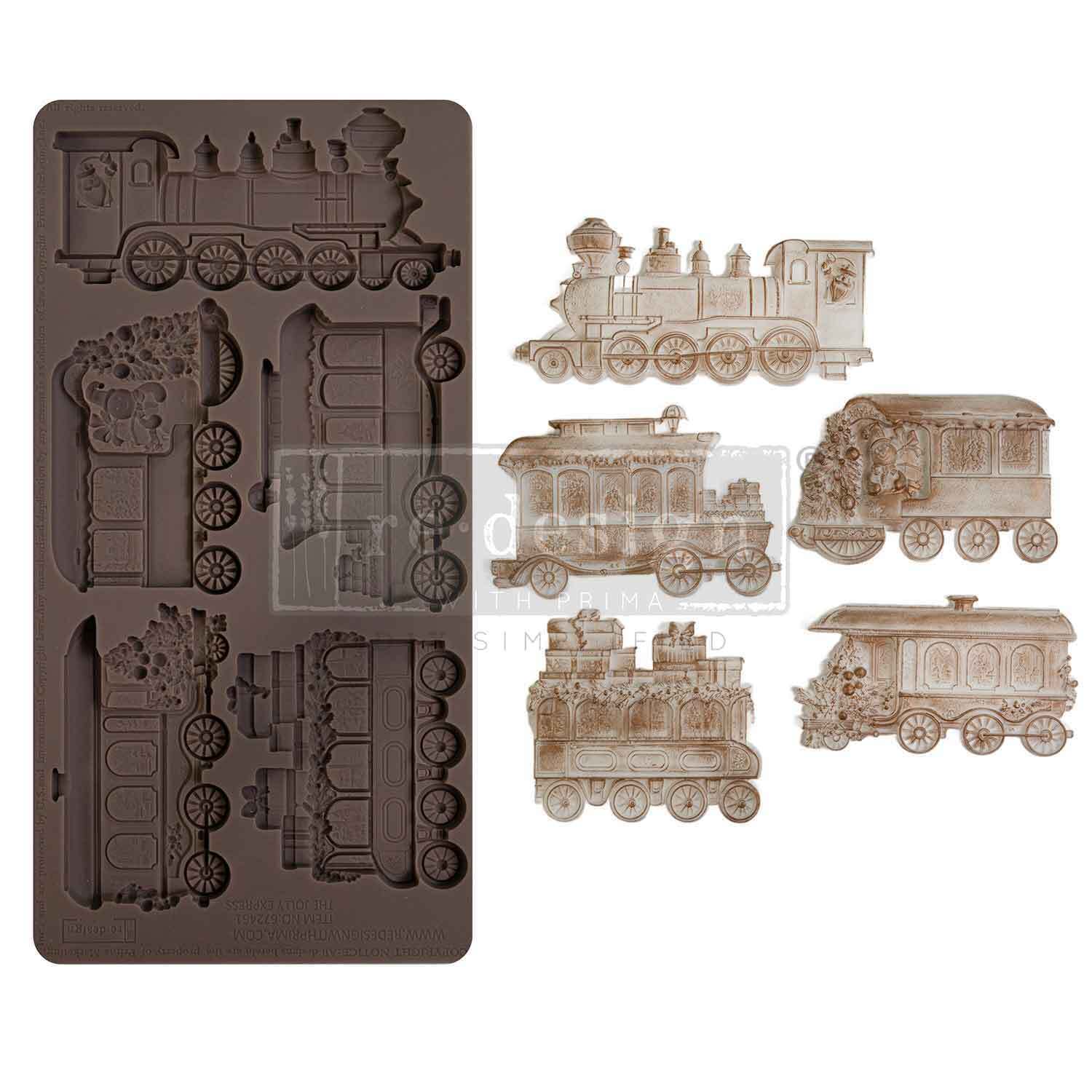 | "1 pc, 5""x10""x8mm - All aboard ""The Jolly Express"" Décor Mould®! This mould brings to life a festive train, loaded with presents and ready to deliver holiday joy. Each piece is intricately detailed, making it perfect for creating stunning holiday accents that evoke the excitement and magic of Christmas. Ideal for embellishing frames, adding ornate details to furniture, and creating elegant holiday ornaments and decor with a timeless touch! What sets these moulds apart is their versatility. Not only are they perfect for DIY and crafting projects, but they're also food-safe and oven-safe, opening up a world of culinary possibilities. Whether you're working with resin, hot glue, modeling material, fondant, chocolate, or other pourable or moldable mediums, these moulds allow you to create your own castings and food decorations with ease." |