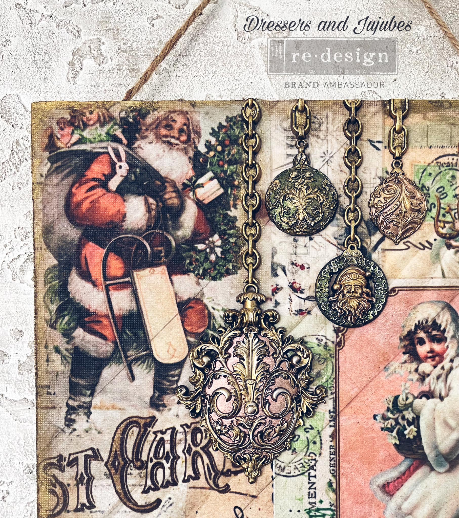 “Red Holiday Traditions’ is another delightfully designed Maxi Transfer in our holiday collection! Vintage Santas, sweet angels, snowflakes, stamps, a darling girl, and lots of text are combined on two 12”x12” transfer sheets, allowing you to use them on a variety of projects to transform your home into a winter wonderland. How to use: Simply cut out your desired design, apply it with a transfer tool, and enjoy the beautiful results! Seal with your favorite water-based sealer or clear wax.