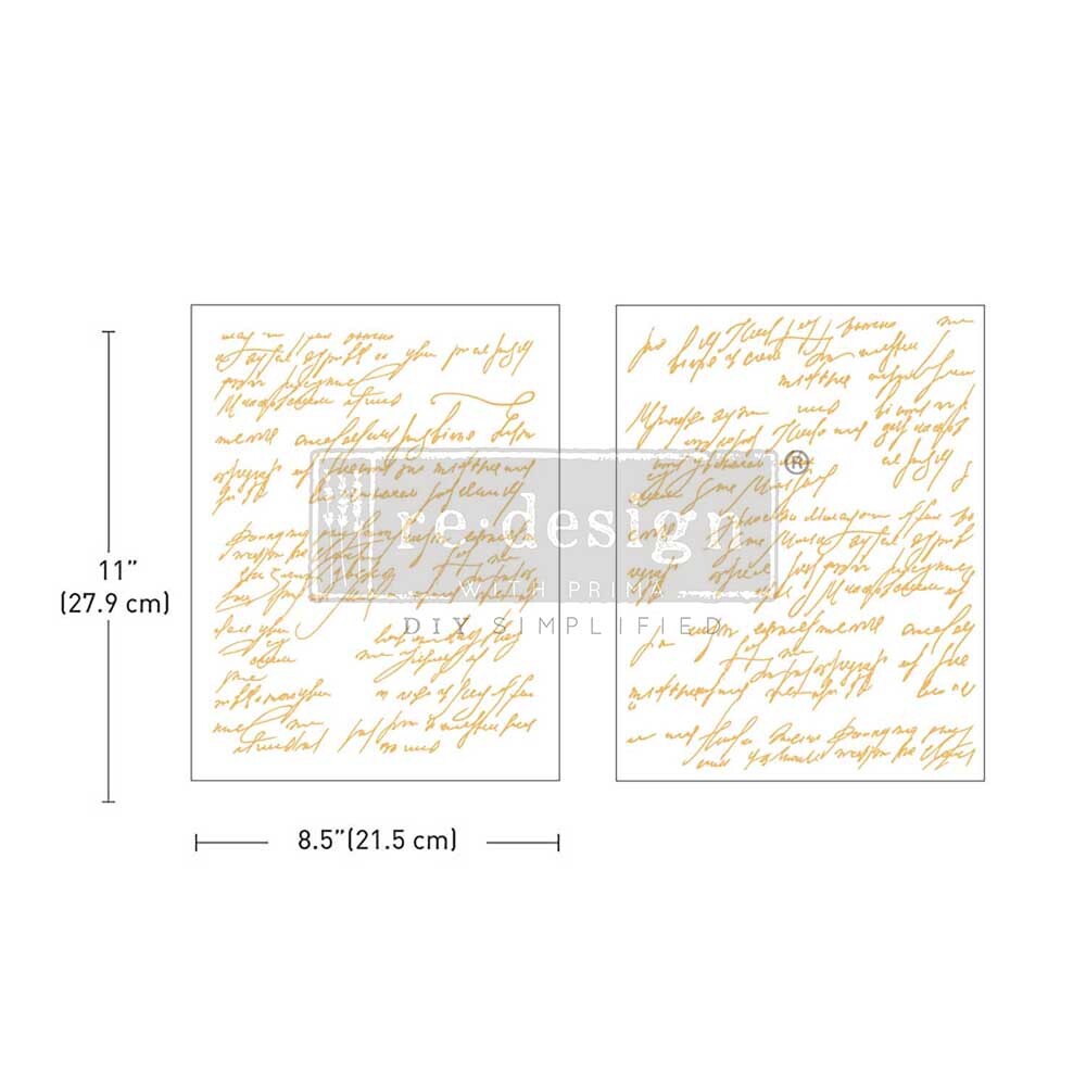 "2 sheets, 8.5""x11"" - Graceful and refined, Shimmering Script by Kácha adds a touch of golden elegance to any surface. With its flowing calligraphy and delicate shine, this Middy Foil Transfer design feels timeless and effortlessly sophisticated. Perfect for creating subtle accents or bold focal points, it works beautifully on deep tones like navy and black or soft neutrals for a luminous finish. HOW TO USE: Position the transfer, rub gently, and seal with wax or varnish to preserve its golden brilliance. Kácha’s signature style ensures your project will exude elegance."