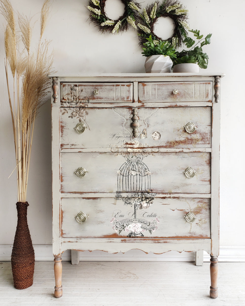 Birdcage lovers rejoice! This Decor Transfer® features beautiful birdcages in different styles adorned Our transfer is so easy to use: simply peel off the protective backing, apply transfer to prepared surface, rub on the design with included stick (or use our Transfer Tool), peel off the top sheet (check to make sure the whole design transferred), and burnish to remove any existing halos. Look for the BEST selection of Décor Transfers in the world, now in multiple sizes, only from Redesign with Prima®!