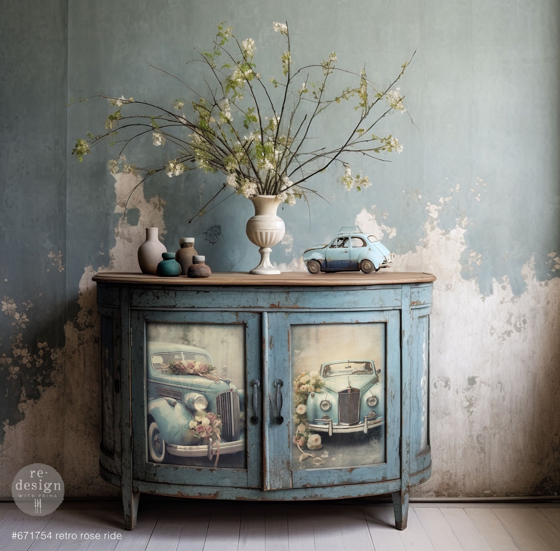 | "Take a nostalgic journey with the ""Retro Rose Ride"" tissue paper pack, a charming blend of vintage cars and delicate roses. The classic allure of a bygone era is vividly captured in each design, perfect for automotive enthusiasts and lovers of retro style alike. Ideal for accenting your DIY projects, it infuses a touch of timeless elegance and a bouquet of floral grace into any room. Whether adorning an antique dresser or creating unique wall art, these designs drive home a sense of history with a romantic twist. 3 sheets, 19.5""x30"" each - Our tissue paper is incredibly easy to use. Simply measure and cut the desired amount of paper, add Decoupage Gel on the prepared surface, set paper on top and smooth it with the Scraper Tool or Brayer. Our Décor Tissue Paper Set, incudes three sheets, each measuring 19.5”x30”, and is perfect for use on walls, furniture, and other décor items" |
