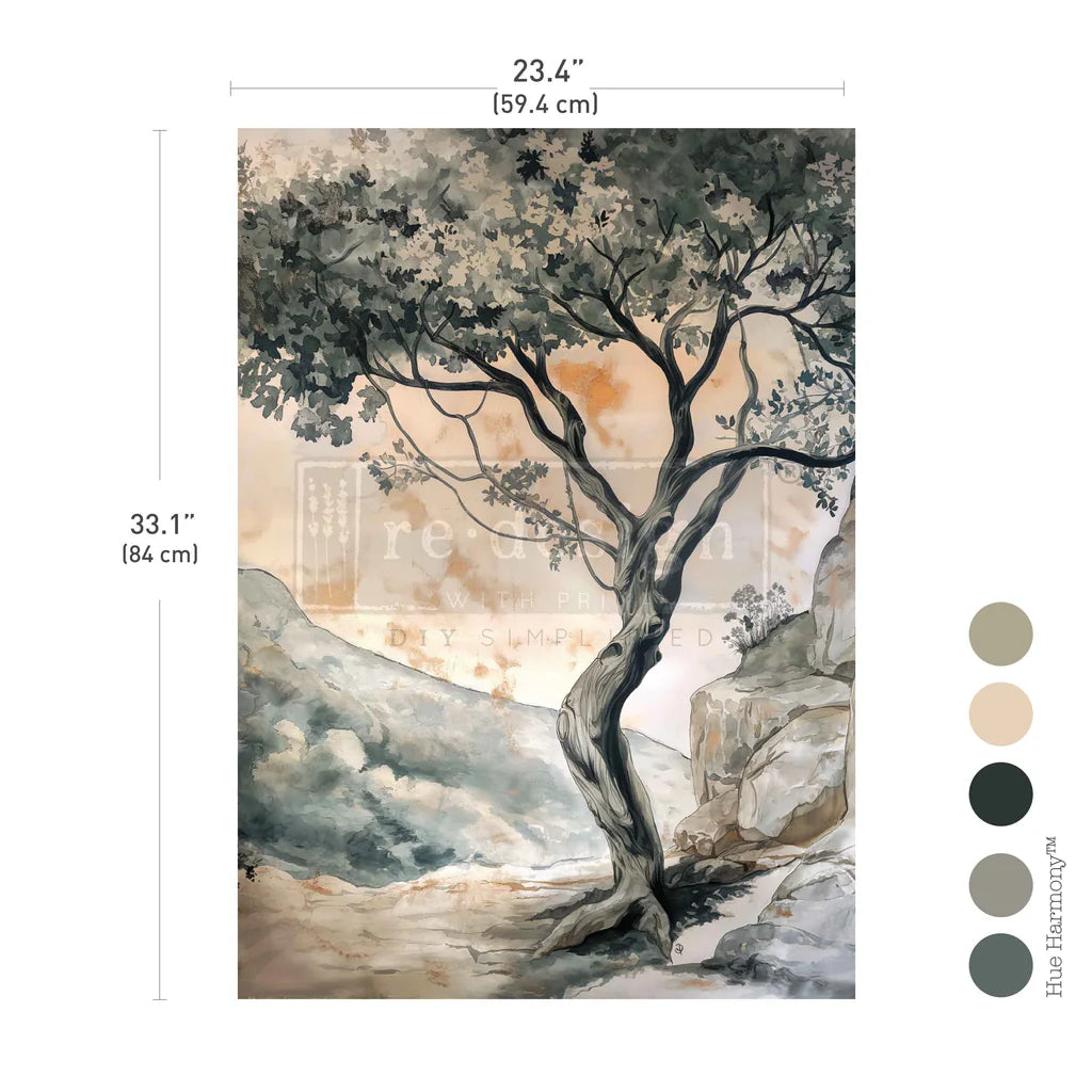 Graceful and grounded, this majestic tree stands tall against a soft wash of natural tones—warm stone, misty grey, and muted greens. Timeless Timber brings quiet strength and earthy charm to any surface, perfect for serene decors and nature-inspired projects.